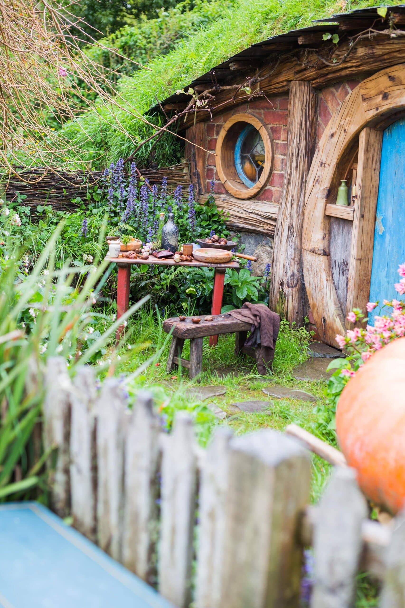 The moment you step onto the grounds, you’re transported into what feels like a real little village. Hobbit holes are scattered charmingly around the landscape, nestled into lush, beautiful hills. The yards are perfectly sculpted, adorned with vibrant flowers and neat little fences. You can almost imagine a hobbit leisurely strolling down the path, perhaps on their way to the Green Dragon Inn for a pint of ale or to tend to their vegetable garden